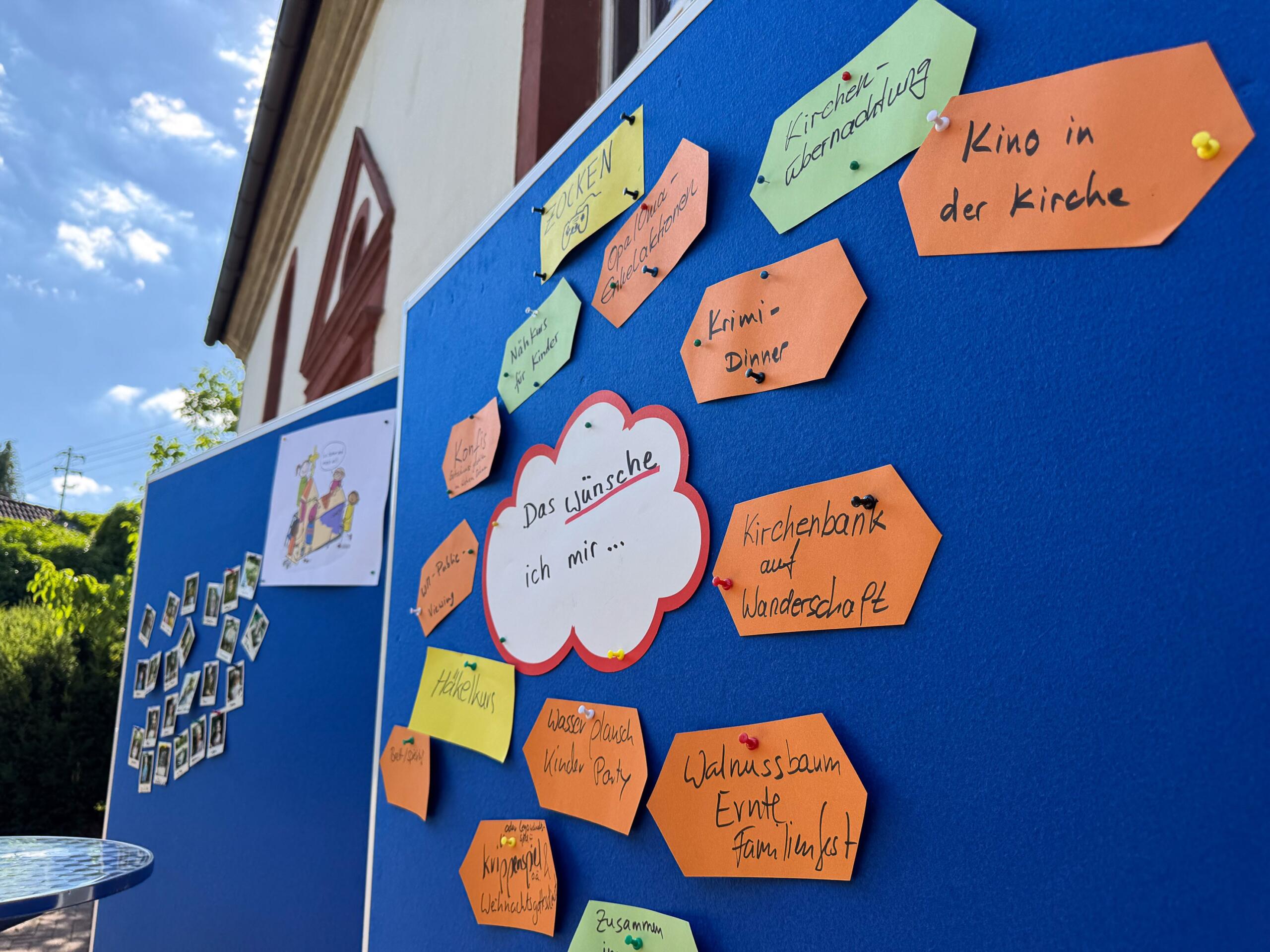 Dann wird sie offiziell Familien-Kathedrale: „Liebe Familien, wir schenken euch eine Kirche!“ Dass das ernst gemeint ist, erleben Familien bei ihrem Start im Juni: Der Duft von frischem Popcorn erfüllt die Kirche, ein Tischkicker, Musikinstrumente, LEGO®, Essen und Trinken – einen Tag lang kommen immer wieder Familien, schauen sich um, machen mit, schreiben Ideen und Wünsche auf Karten, machen sich ein Bild von der Kirche – und mit einer Sofortbildkamera ein Bild von sich für die Kirche. Und es gibt schon konkrete Wünsche: Weinprobe, Kindergeburtstag, Krimidinner, Lagerfeuer, Karaoke-Abende, Yoga, Kunstworkshops, Kirche Kunterbunt… Einige reagieren prompt mit „Da mache ich mit!“, „Da helfe ich mit!“, oder „Das kann ich anbieten!“ Davon lebt die Familien-Kathedrale: Alle bringen sich ein und mischen mit – ohne dass es ein vorgegebenes Konzept gibt. Gemeinsam wird davon geträumt, was hier alles möglich ist. Keine andere Kirche bietet so viel Raum für eigene Ideen – genau das ist ihre Größe und macht sie zur „Kathedrale“ (auch wenn sie äußerlich nur eine Dorfkirche ist): ein großartiger Raum für Familien!
