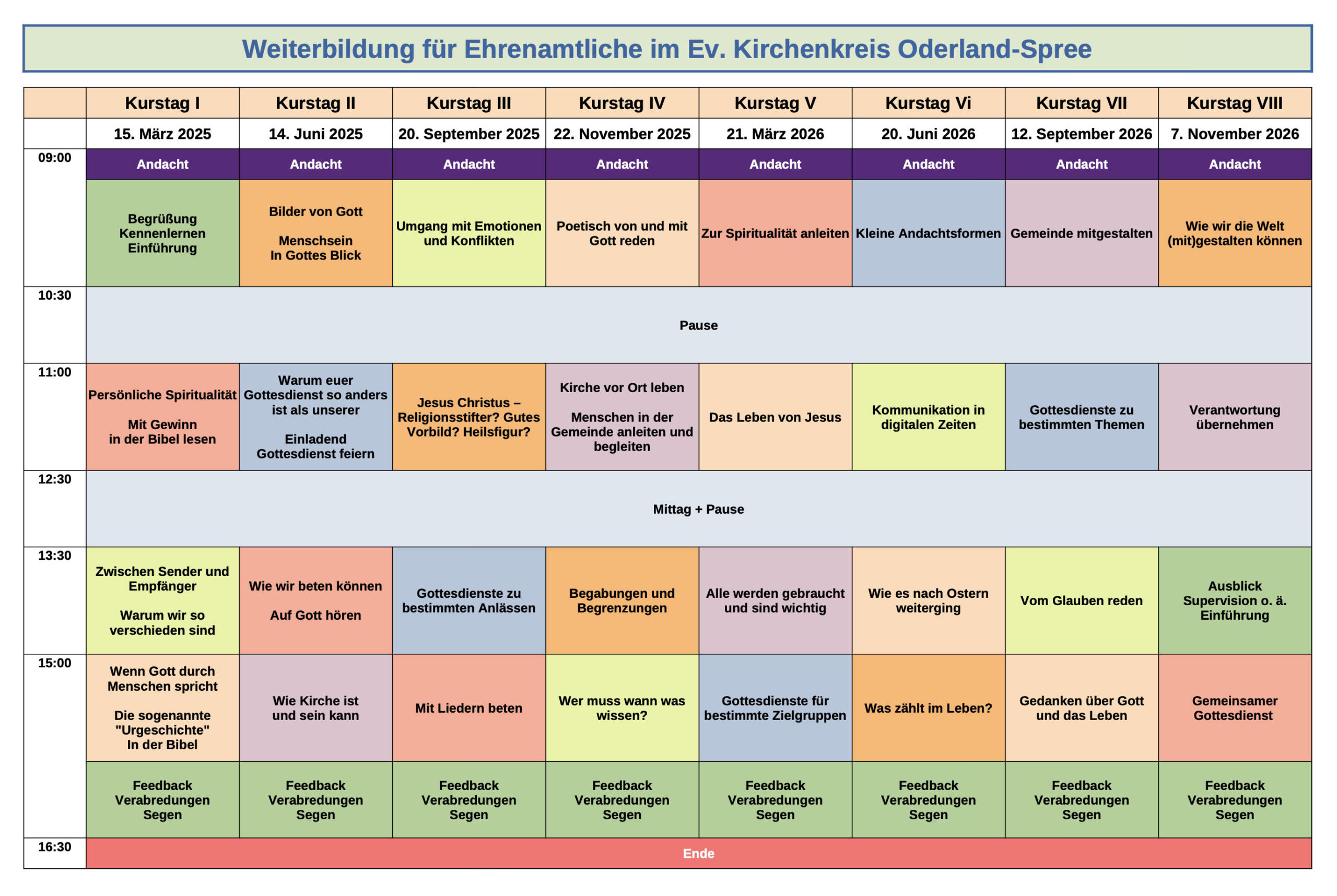 Hauptsächlich aus Menschen, die Gemeinde ehrenamtlich leiten, also Mitgliedern der Gemeindekirchenräte. Die Altersspanne liegt zwischen 40 und 70 Jahren und es sind mehr Frauen als Männer in der Gruppe. Die Treffen sind alle in Fürstenwalde, das ist die Mitte des Kirchenkreises.