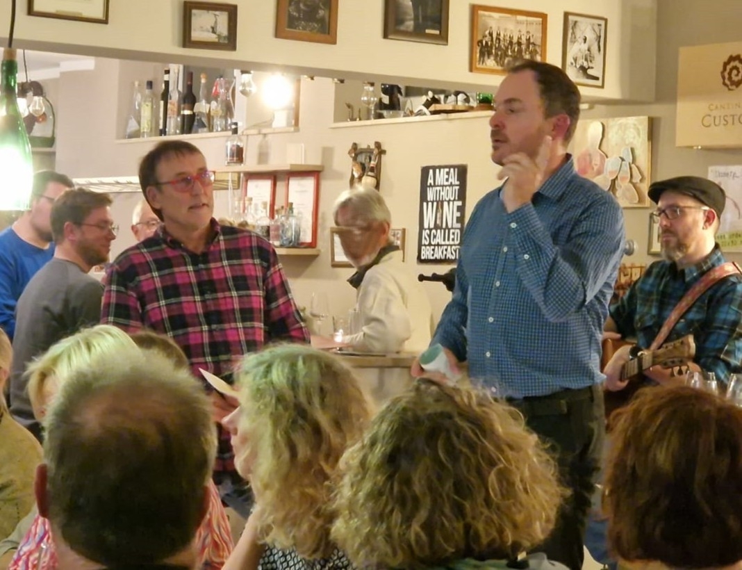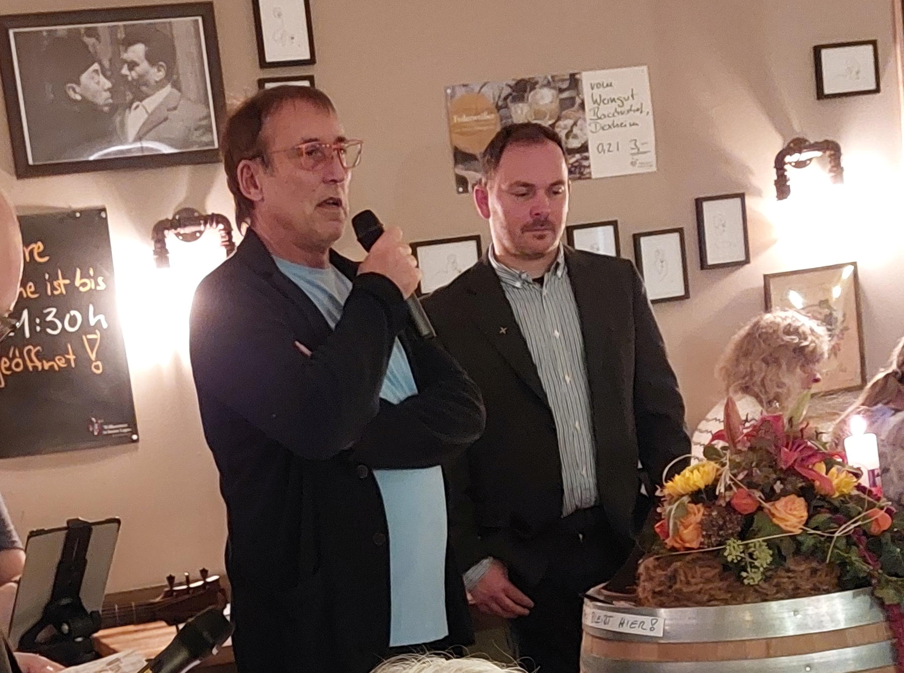 ‚Oarhelljer Kneipengottesdienst‘ mit Predigt vom Fass, so lautete es in der Ankündigung zum ersten Gottesdienst dieses Formats, den wir im Oktober 2024 feierten. Dies war auch wörtlich zu verstehen, denn er fand in einer Weinstube statt und als Predigtpult diente ein Weinfass. Mit den Worten „Prost und Amen“ konnte eine gut durchmischte Kneipengemeinde begrüßt werden. Etwa 60 Personen füllten die Lokalität bis auf den letzten Platz. Unterstützt durch einen Livemusiker erklangen Lieder wie ‚Ein Stück vom Himmel‘ (Grönemeyer), ‚Engel‘ (Oerding), aber auch neues geistliches Liedgut wie ‚One of us‘ oder ‚Sailing‘, die im Ergänzungsband des Evangelischen Gesangbuchs (EGplus) zu finden sind. Biblischer Inhalt war die Hochzeit zu Kana.